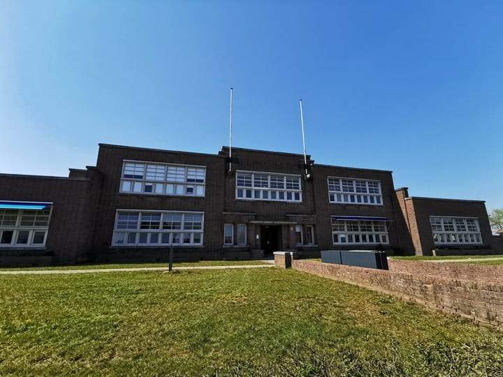Der ehemalige Schulhof dient nun als Außenbereich und Parkplatz für die Bewohner. Der Komplex verfügt über mehrere Zugangspunkte und ist von der Straße, einem Gemeinschafts-Fahrradkeller oder Ihrem Auto aus leicht erreichbar. Die umliegende Nachbarschaft wurde umfassend renoviert, und der Komplex Reigerstaete ist dank seiner atmosphärischen Höhenunterschiede und seines typischen symmetrischen Straßenmusters seit fast einem Jahrhundert ein zentraler Orientierungspunkt.