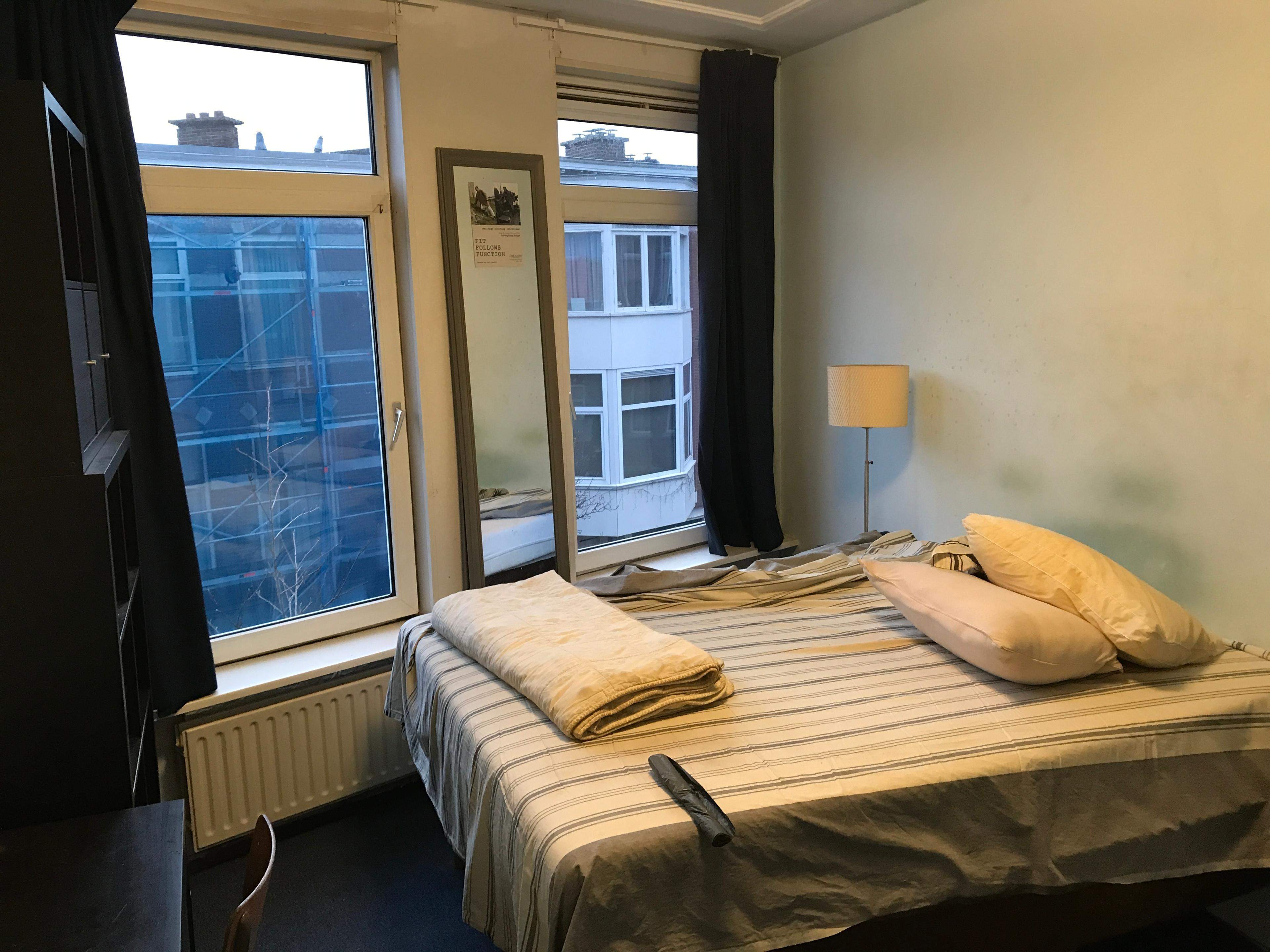 Dieses möblierte Zimmer befindet sich in einem alten Haus in der Schipperstraat in Den Haag, nahe dem Hafen von Scheveningen. Das Zimmer ist ca. 3x4 Meter groß und Teil eines gemeinschaftlich genutzten Wohnbereichs.
