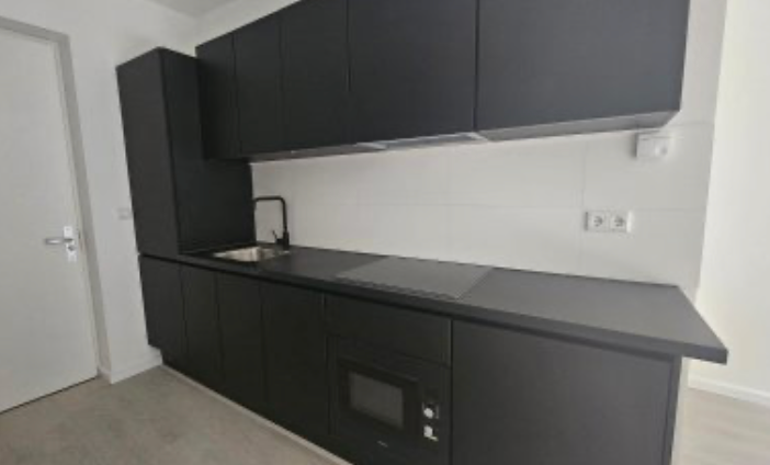 Das Studio hat eine Wohnfläche von ca. 25 m² und verfügt über einen hellen Wohn-/Schlafbereich mit offener Küche. Die Küche ist mit den notwendigen Einbaugeräten ausgestattet, darunter ein Kochfeld, eine Dunstabzugshaube, ein Kühlschrank und ein Kombi-Ofen/Mikrowelle. Das Badezimmer ist kompakt und funktional gestaltet, mit einer Dusche, einer Toilette und einem Waschbecken. Ein angenehmer Zusatz ist das Fehlen eines privaten Balkons, jedoch entschädigt die zentrale Lage des Gebäudes dafür.