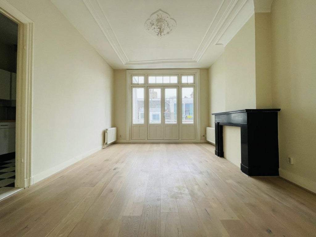 El diseño cuenta con una entrada a nivel de la calle que conduce a un pasillo compartido. Desde allí, unas escaleras conducen al 2º piso donde la puerta de entrada privada se abre a una sala de estar en suite. La sala de estar consta de dos espacios separados, aproximadamente de 20 m² y 18 m², que están divididos por puertas correderas originales. Estos espacios incluyen una chimenea decorativa y un techo ornamentado, con una ubicación en esquina que ofrece vistas al Kurhaus. Las puertas francesas se abren a un balcón, brindando la oportunidad de disfrutar del aire fresco del mar.