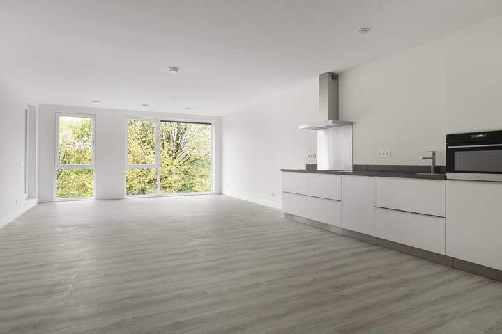 L'appartement se caractérise par son salon lumineux et aéré avec accès direct à l'espace extérieur. La luxueuse cuisine ouverte est entièrement équipée d'appareils modernes, dont un four combiné et un lave-vaisselle. La salle de bain dispose d'un double lavabo et d'une spacieuse douche à l'italienne. La chambre est spacieuse et offre un grand espace de rangement.