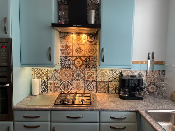 L'agencement de l'appartement commence au rez-de-chaussée avec une entrée qui mène à l'escalier allant au premier étage. Au premier étage, vous trouverez un salon spacieux et une cuisine ouverte équipée d'une cuisinière à gaz à quatre feux, d'une hotte aspirante, d'un évier, d'un four, d'un micro-ondes, d'un lave-vaisselle et d'une combinaison réfrigérateur/congélateur. De plus, il y a un couloir avec des toilettes et un escalier menant au deuxième étage.