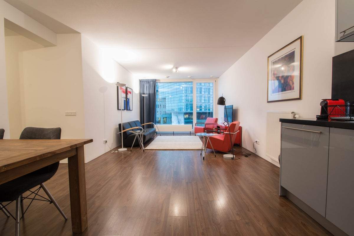 De woonkamer en keuken zijn modern en licht, met een volledig uitgeruste keuken met een 5-pits gasfornuis, vaatwasser, oven/magnetron en meer. Het appartement is ingericht met modern design meubilair, waardoor het direct bewoonbaar is. De locatie is zeer goed bereikbaar met openbaar vervoer of auto, met de A10 in de buurt via de Spaarndammer tunnel.