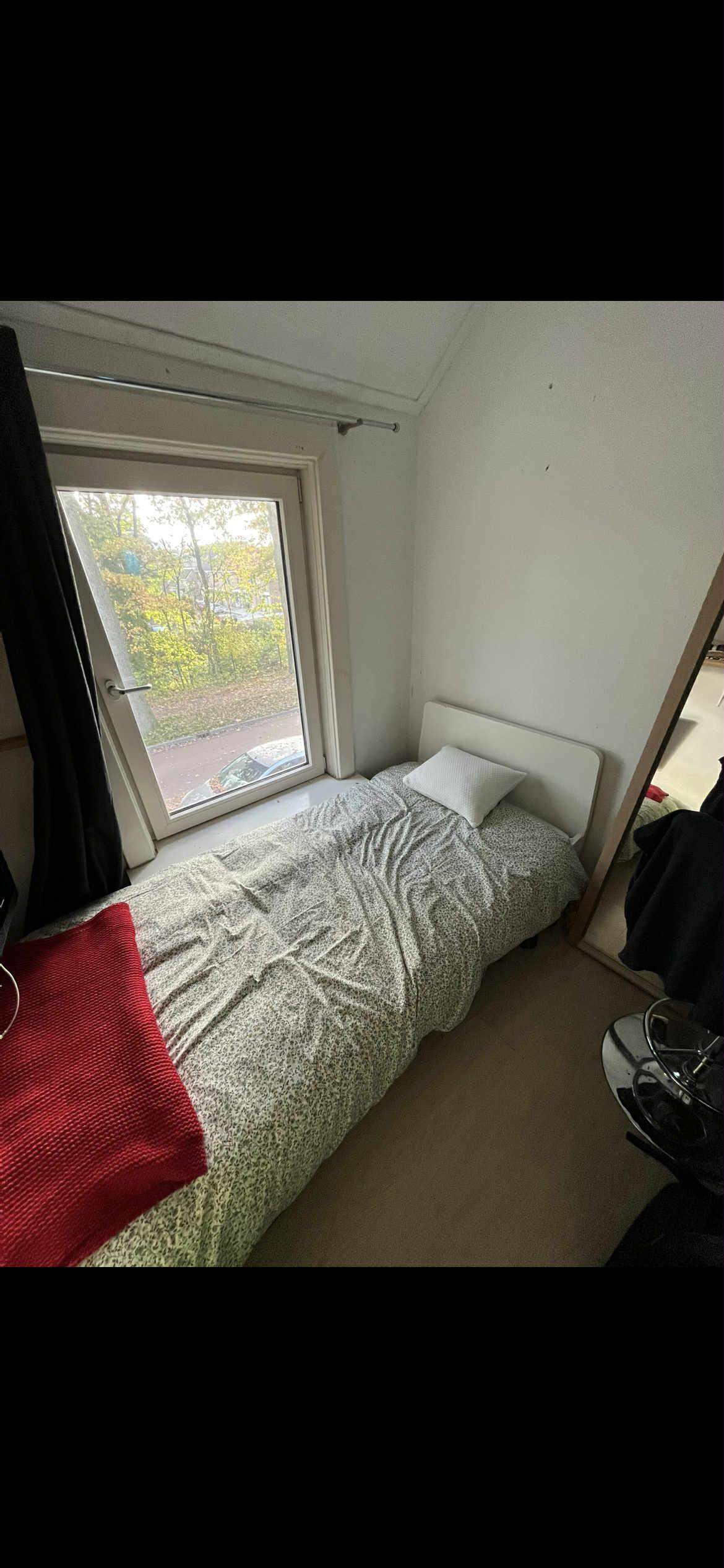 De kamer is gemeubileerd met een eenpersoonsbed, een bureau en enkele planken voor het opbergen van kleding. De huurprijs is €208 per maand, inclusief nutsvoorzieningen. De huurperiode is onbepaald, beginnend op 1 februari 2026. Bezichtigingen zijn mogelijk in overleg met de verhuurder.