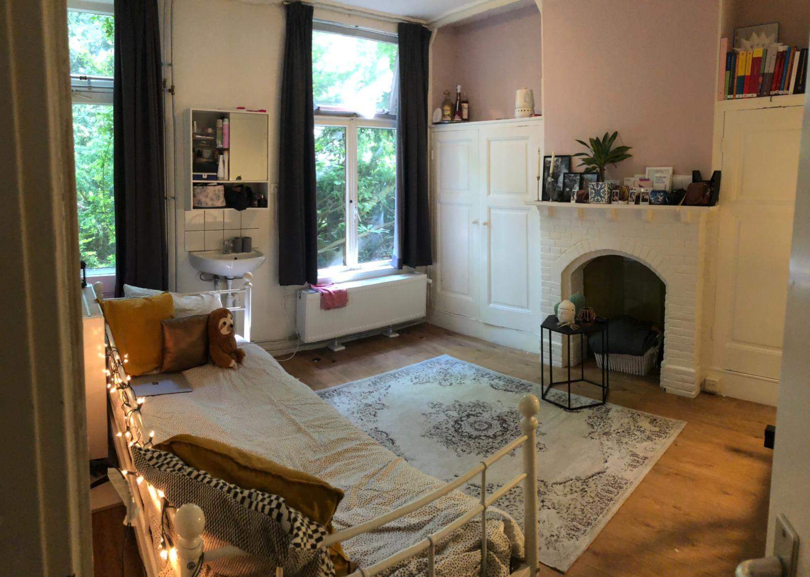 Available from May 15, 2025, this unfurnished room is located on the ground floor of a house in the Zuiderpark area. The room is approximately 12 m² and features its own sink, along with two built-in closets that save space. The large windows provide ample natural light, creating a pleasant atmosphere. Residents share the kitchen with three other housemates, fostering a sense of community while still allowing for personal space.