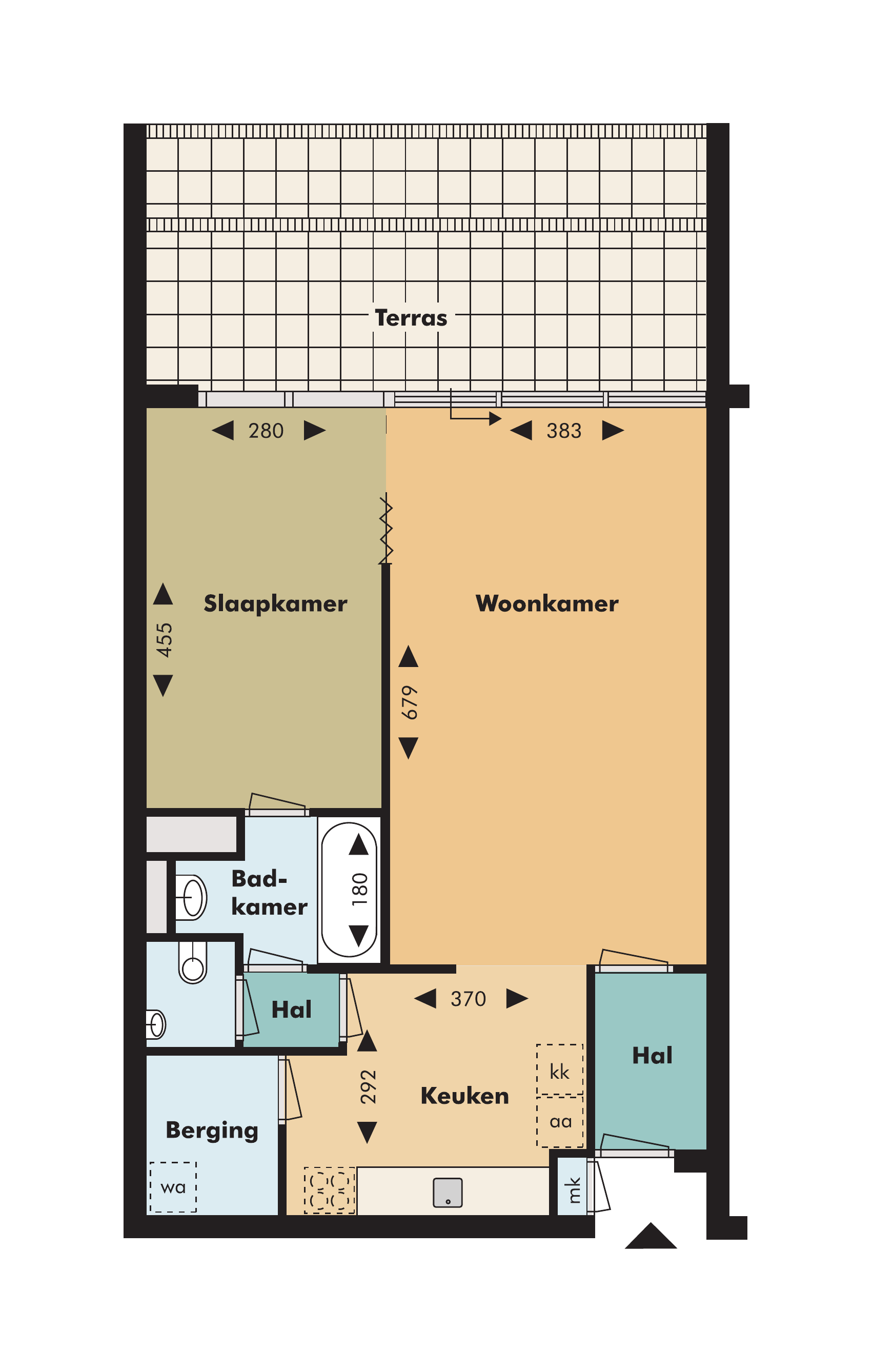 The Parkzicht complex is situated in a green living environment, near a park and a petting zoo, with shops in the immediate vicinity. The apartments on the ground floor have a garden, while the other apartments have a large terrace spanning the full width of the apartment. Parking is readily available in the surrounding area.