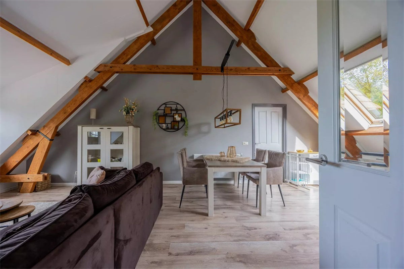 This apartment is located on the Hondsiepsebaan in Ottersum and is available for rent. It is a spacious upper-level apartment with four rooms and a total living area of approximately 90 square meters. The apartment is fully furnished and has been completely renovated in recent years, combining modern living comfort with rural charm. The location is particularly attractive, situated directly on the edge of the extensive Reichswald forest, yet still within a short distance to amenities.